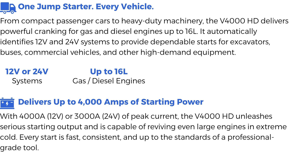 V4000 HD - One Jump Starter for All Your Heavy-Duty Needs